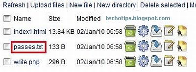 5. Once he logs in to his Facebook account using Phisher, all his typed Facebook id and password is stored in "passes.txt". This file is created in your webhost control panel as shown.